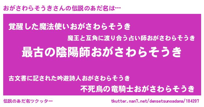 | 肩書あだ名 | 『おがさわらそうき上級大将』 |