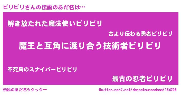 | ヒーロー風カッコイイあだ名 | 『友情の使者ビリビリ』『魔戒騎士ビリ』 |