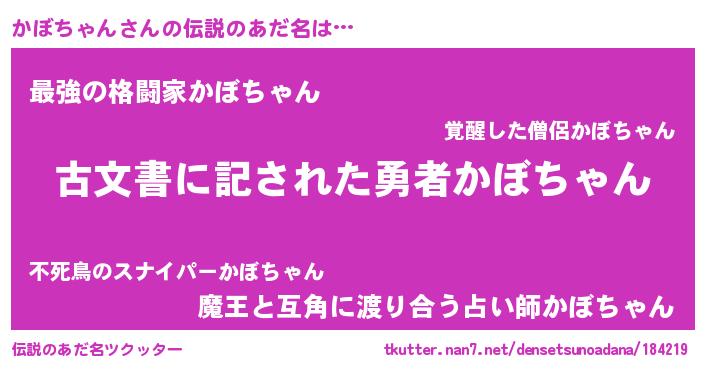 | ヒーロー風カッコイイあだ名 | 『ネオカボチャン』『仮面カボダー』 |