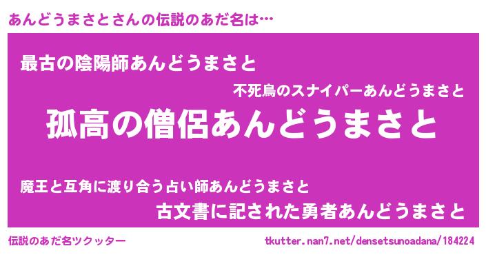 | 意味不明あだ名 | 『とにかく怪しいあんどうまさと』 |