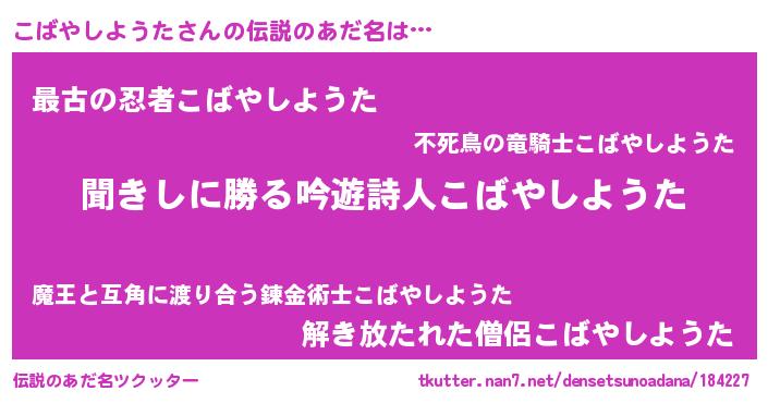 | 意味不明あだ名 | 『住所不定無職こばやしようた(8歳)』 |