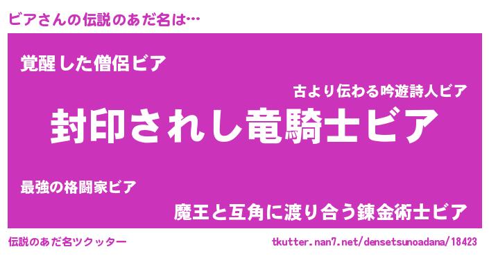 | 女子向けラノベタイトル風あだ名 | 『ビアストレイドッグス』『ビア恋絵巻』 |