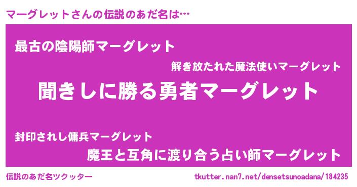 | 意味不明あだ名 | 『永久保存マーグレット』 |