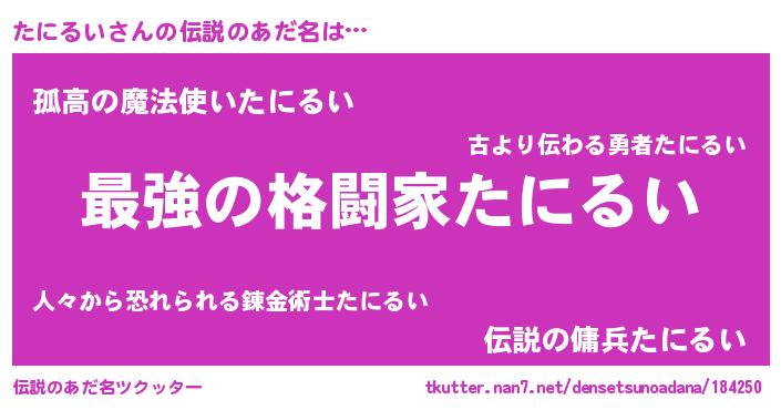 | 意味不明あだ名 | 『たにるいフォーエバー』『自称たにるい』 |