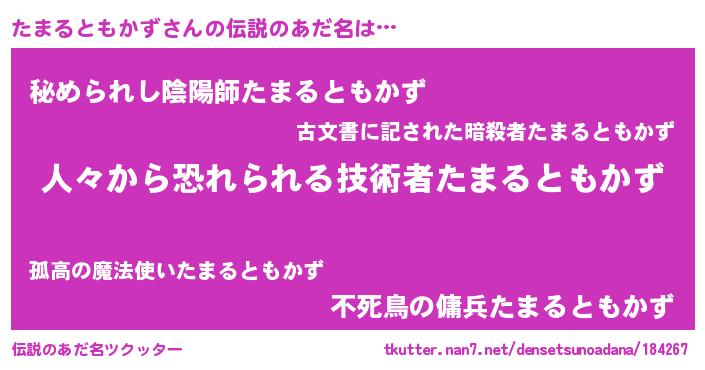 | ヒーロー風カッコイイあだ名 | 『正義の使者たまるともかず』 |