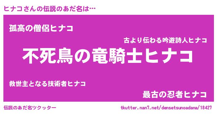 | ポケモン風あだ名 | 『ヒーナイ』『ヒナゴンZ』『ヒヒナコ』 |