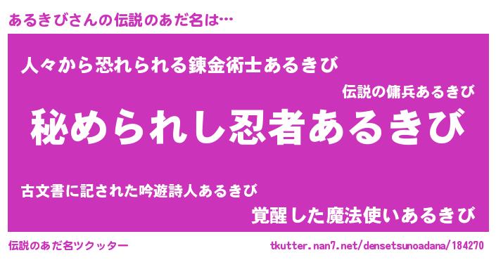 | 意味不明あだ名 | 『あるきびフォーエバー』 |