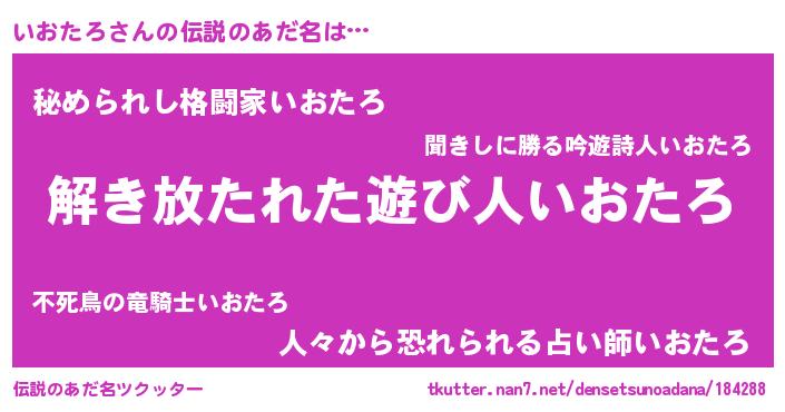 | 男性向けラノベタイトル風あだ名 | 『Re:いおたろから始める異世界生活』 |
