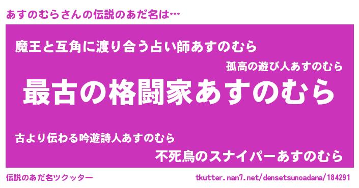 | 意味不明あだ名 | 『住所不定無職あすのむら(5歳)』 |