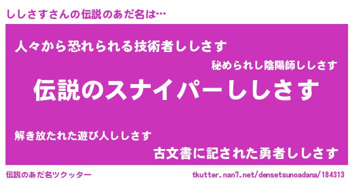 | ヒーロー風カッコイイあだ名 | 『仮面シシダー』『スーパーシシサス』 |