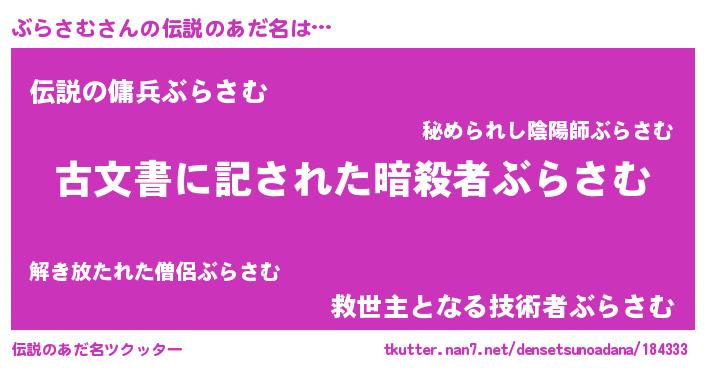 | ヘコむあだ名 | 『ぶらさむ(笑)』『ぶらにゅー』 |