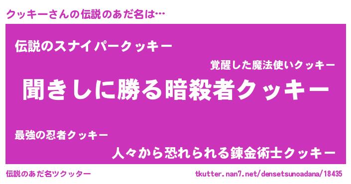 | 男性向けラノベタイトル風あだ名 | 『クッキーという概念が存在しない退屈な世界 』 |