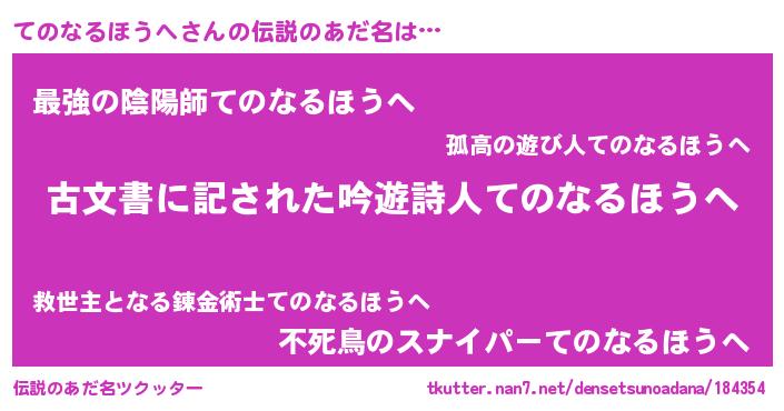 | ヒーロー風カッコイイあだ名 | 『仮面テノダー』『ネオテノナルホウヘ』 |