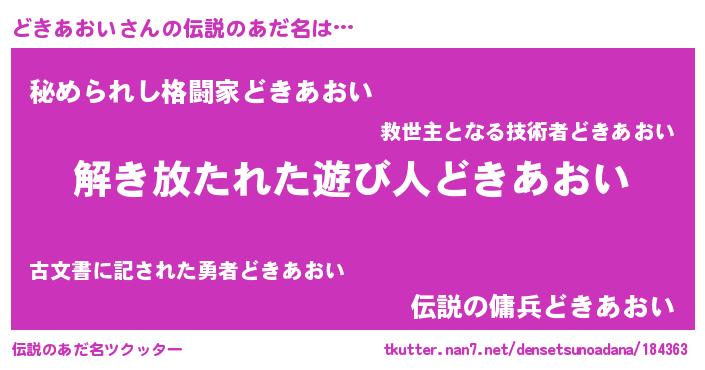 | ヒーロー風カッコイイあだ名 | 『銀牙騎士ドキ』『スーパードキアオイ』 |