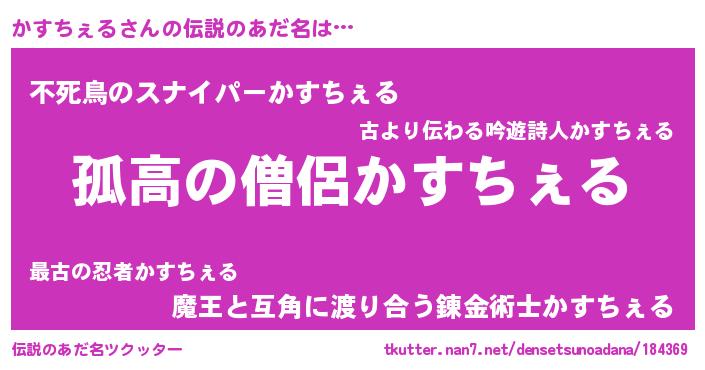 | 意味不明あだ名 | 『とにかく怪しいかすちぇる』 |