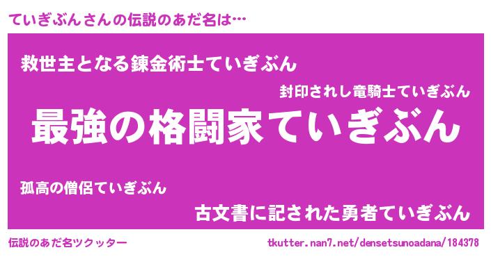 | ファンタジー風あだ名 | 『エターナルテイギブンー』『ゼテイトゥ』 |