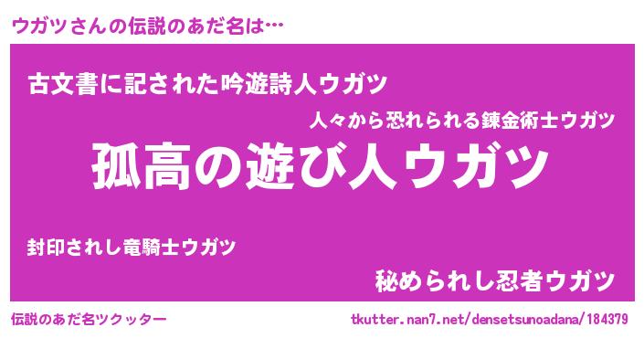 | 意味不明あだ名 | 『とにかく怪しいウガツ』『自称ウガツ』 |