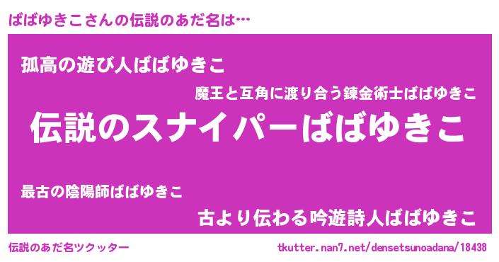 | 男性向けラノベタイトル風あだ名 | 『ばばゆきこの憂鬱』 |