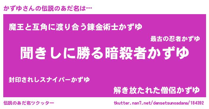 | 男性向けラノベタイトル風あだ名 | 『緋弾のカズユ』 |