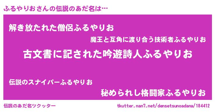 | 胡散臭い通販商品みたいなあだ名 | 『あなたにだけ特別に提供する100年もののヴィンテージワイン…その名も「ふるやりお」』 |