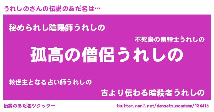 | ヒーロー風カッコイイあだ名 | 『黄金騎士ウレ』『仮面ウレダー』 |