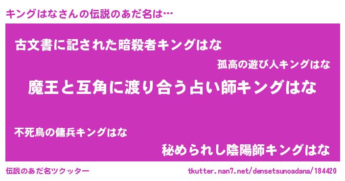 | 女子向けラノベタイトル風あだ名 | 『キングはな恋絵巻』 |
