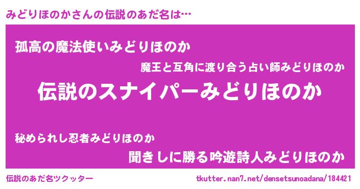 | 意味不明あだ名 | 『住所不定無職みどりほのか(84歳)』 |