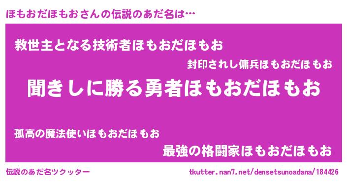 | 胡散臭い通販商品みたいなあだ名 | 『絶対に幸福をもたらす水素水…その名も「ほもおだほもお」』 |
