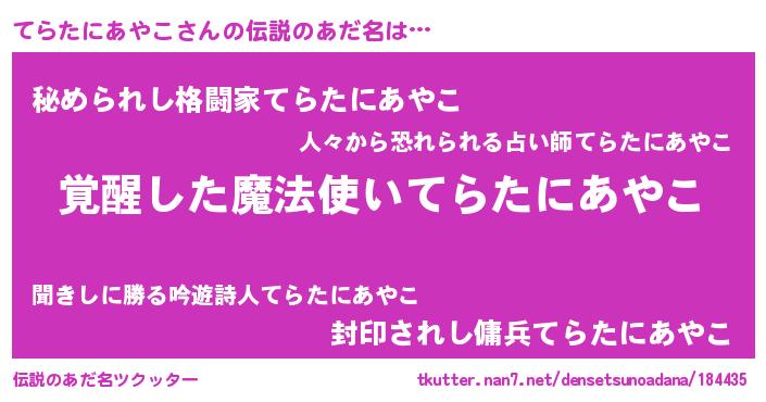 | ポケモン風あだ名 | 『ヒテラタニアヤコ』『テラキング』 |