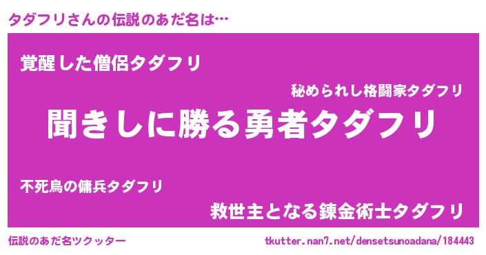 | ヒーロー風カッコイイあだ名 | 『仮面タダダー』『ネオタダフリ』 |