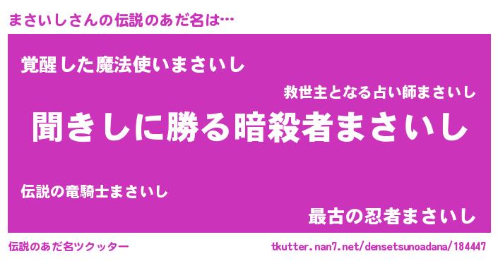 | 女子向けラノベタイトル風あだ名 | 『異世界で失敗しない100のまさいし』 |