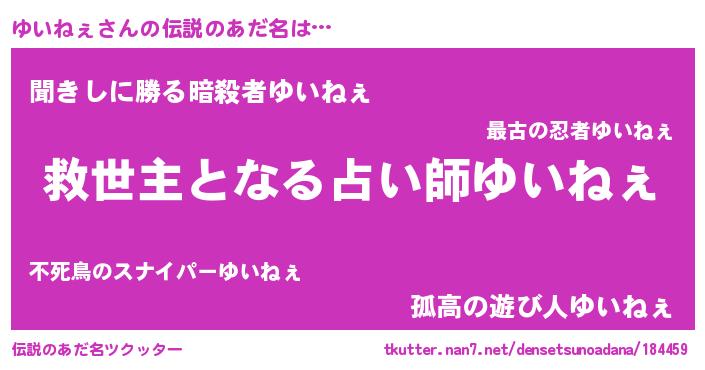 | ヘコむあだ名 | 『ゆいねぇ(爆)』『ゆいぷりん』 |