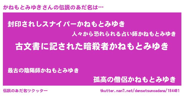 | 意味不明あだ名 | 『永久保存かねもとみゆき』 |
