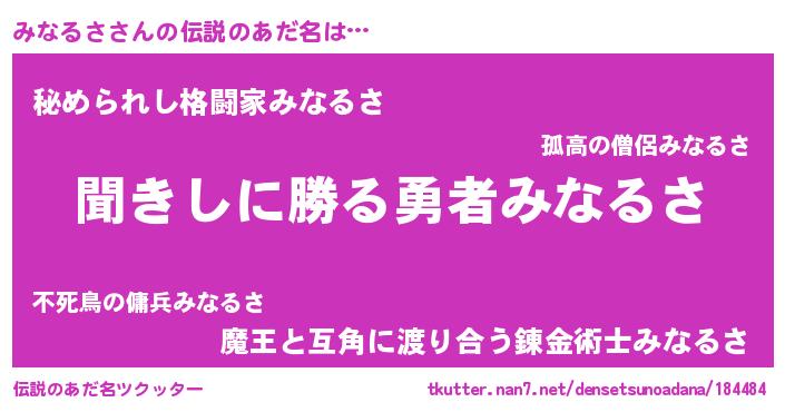 | 意味不明あだ名 | 『永久保存みなるさ』『自称みなるさ』 |