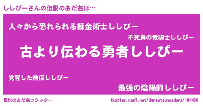 | 意味不明あだ名 | 『永久保存ししぴー』『自称ししぴー』 |