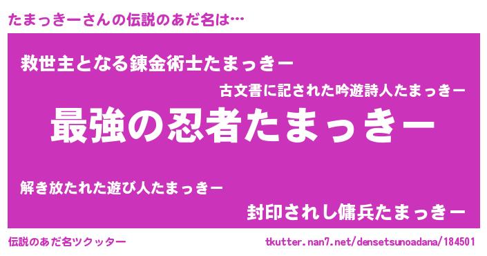 | 意味不明あだ名 | 『たまっきーフォーエバー』 |