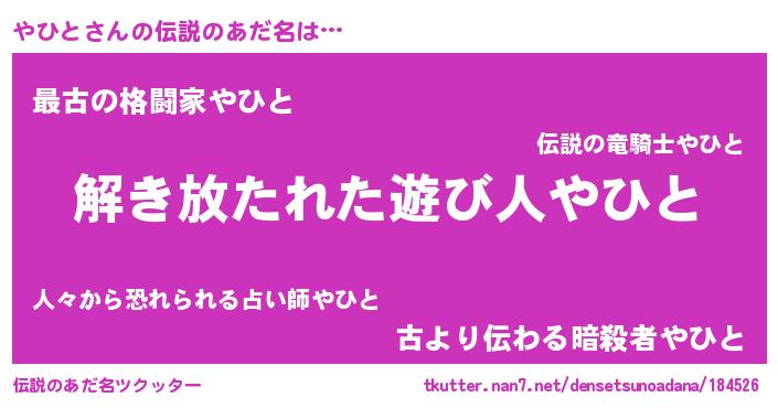 | ヘコむあだ名 | 『やひっぺ』『豆乳』『やひと(笑)』 |