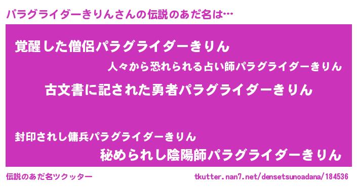 | 胡散臭い通販商品みたいなあだ名 | 『前代未聞の水素水…その名も「パラグライダーきりん」』 |