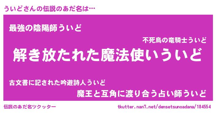 | ヒーロー風カッコイイあだ名 | 『魔戒騎士ウイ』『ウルトラういどマン』 |
