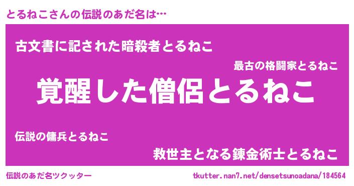 | 男性向けラノベタイトル風あだ名 | 『この素晴らしい世界にとるねこを!』 |