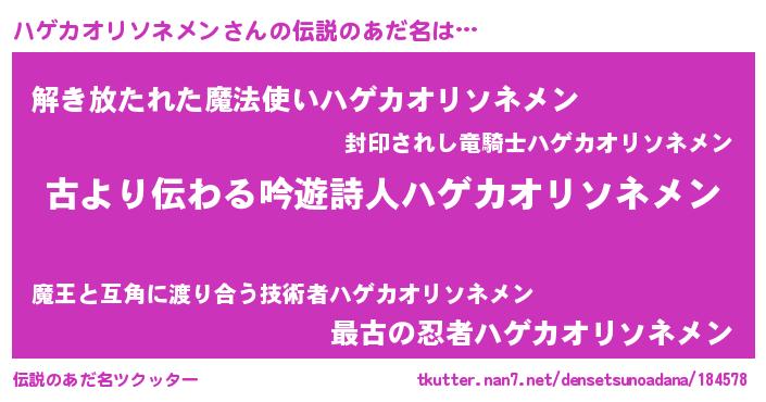 | ヒーロー風カッコイイあだ名 | 『ネオハゲカオリソネメン』 |