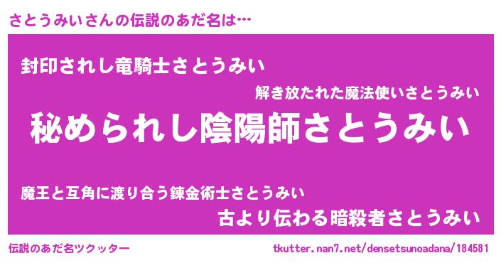| 男性向けラノベタイトル風あだ名 | 『やはりさとうみいの青春ラブコメはまちがっている 』 |