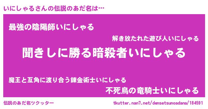| 男性向けラノベタイトル風あだ名 | 『いにしゃるという概念が存在しない退屈な世界 』 |