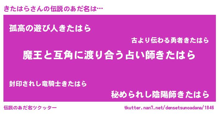| ヒーロー風カッコイイあだ名 | 『サイバー戦士キタハラ』『魔戒騎士キタ』 |