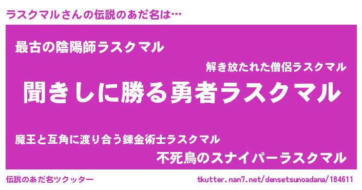 | 男性向けラノベタイトル風あだ名 | 『ラスクマルという概念が存在しない退屈な世界 』 |