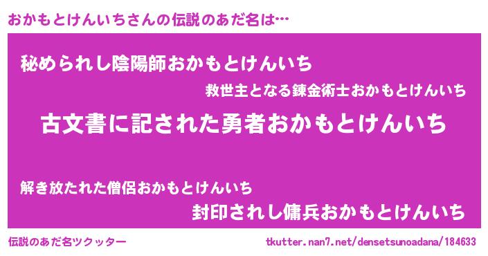 | 意味不明あだ名 | 『永久保存おかもとけんいち』 |