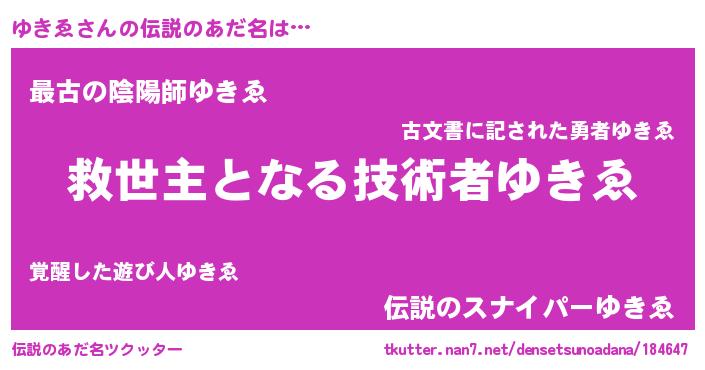 | ヒーロー風カッコイイあだ名 | 『慈愛の使者ゆきゑ』『仮面ユキダー』 |