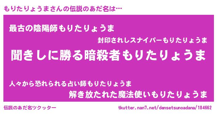 | ヒーロー風カッコイイあだ名 | 『ネオモリタリョウマ』『炎刃騎士モリ』 |