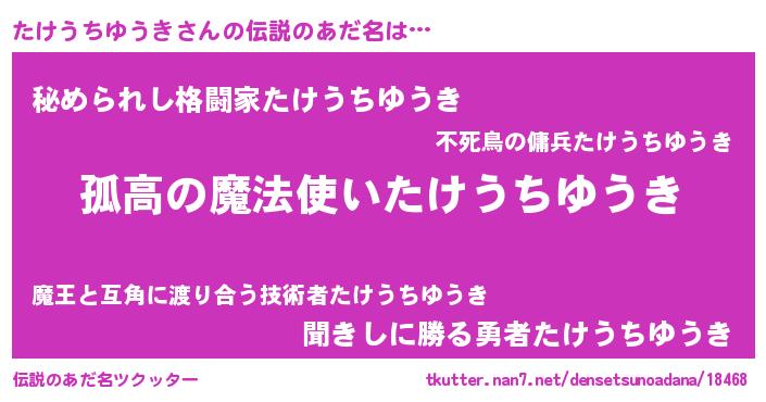 | 胡散臭い通販商品みたいなあだ名 | 『信頼と実績のサプリメント…その名も「たけうちゆうき」』 |