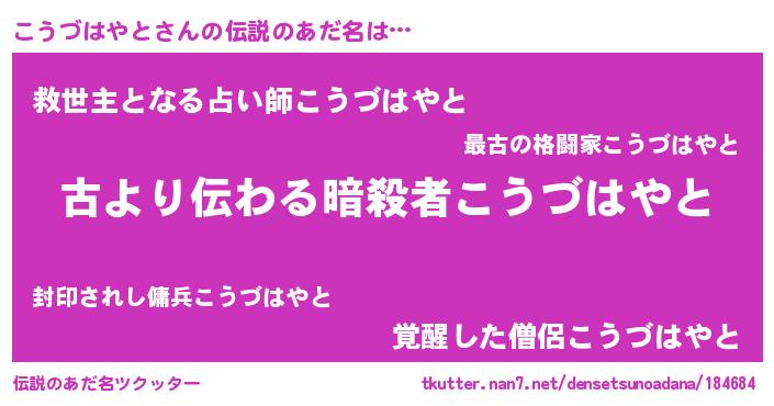 | 意味不明あだ名 | 『永久保存こうづはやと』 |